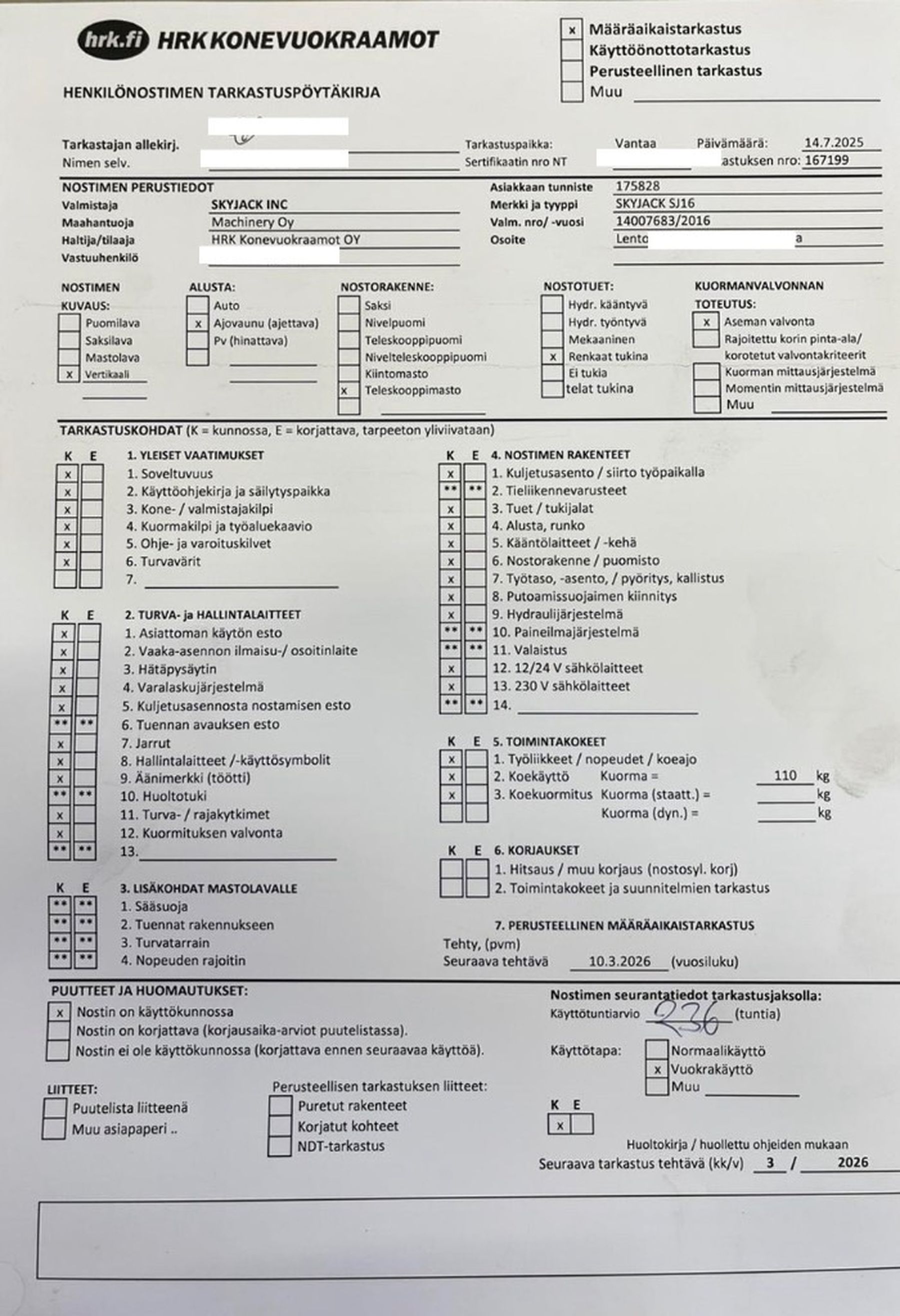 Useita hyväkuntoisia ja toimivia SkyJack SJ16. Nostimilla yksi omistaja ja tarkastettu sekä huollettu säännöllisesti.